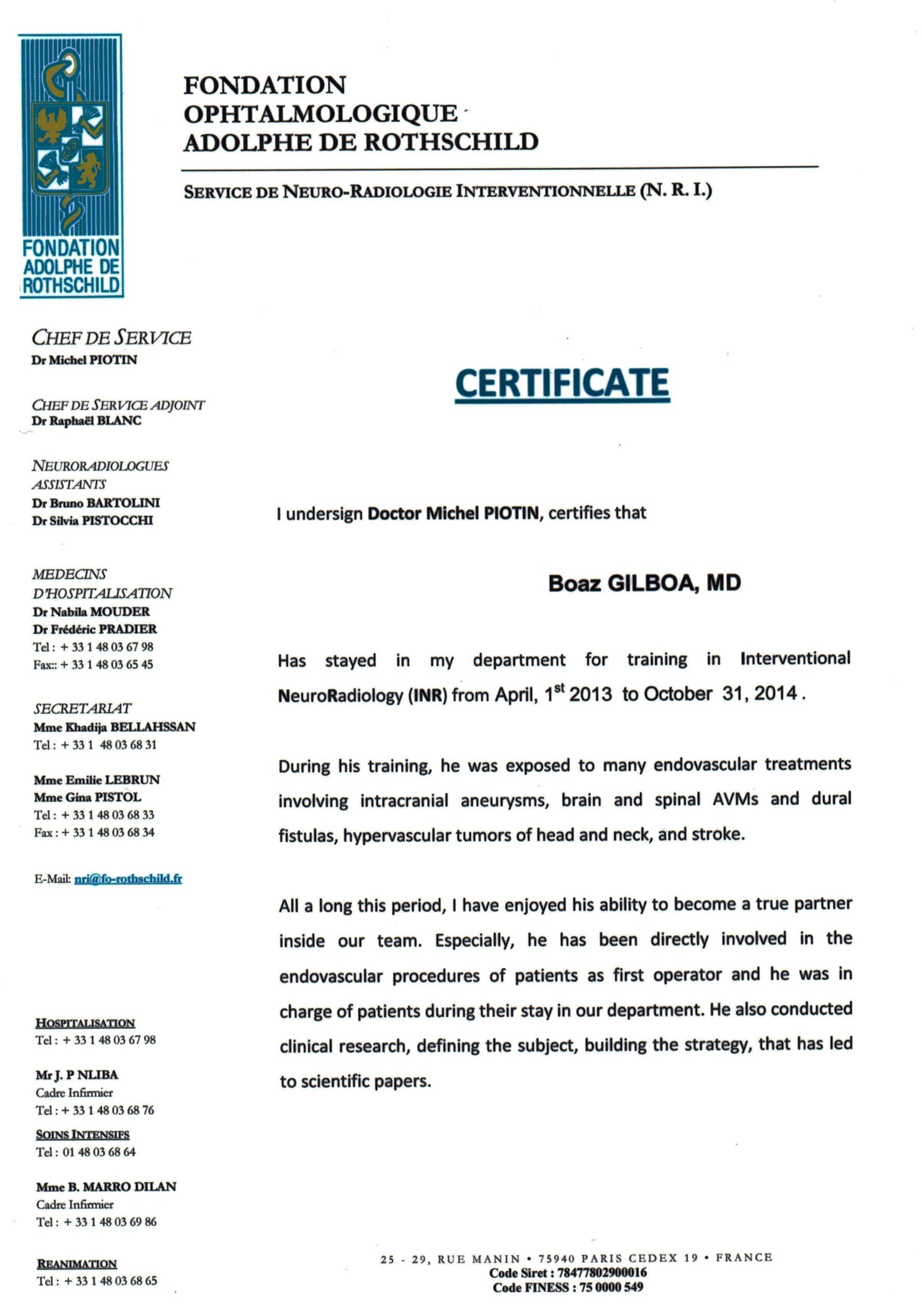בית החולים HOPITAL FONDATION ADOLPHE DE ROTHSCHILD נחשב לאחד משני המרכזים הגדולים באירופה לצנתורים בכלל ולצנתורי שבץ בפרט.